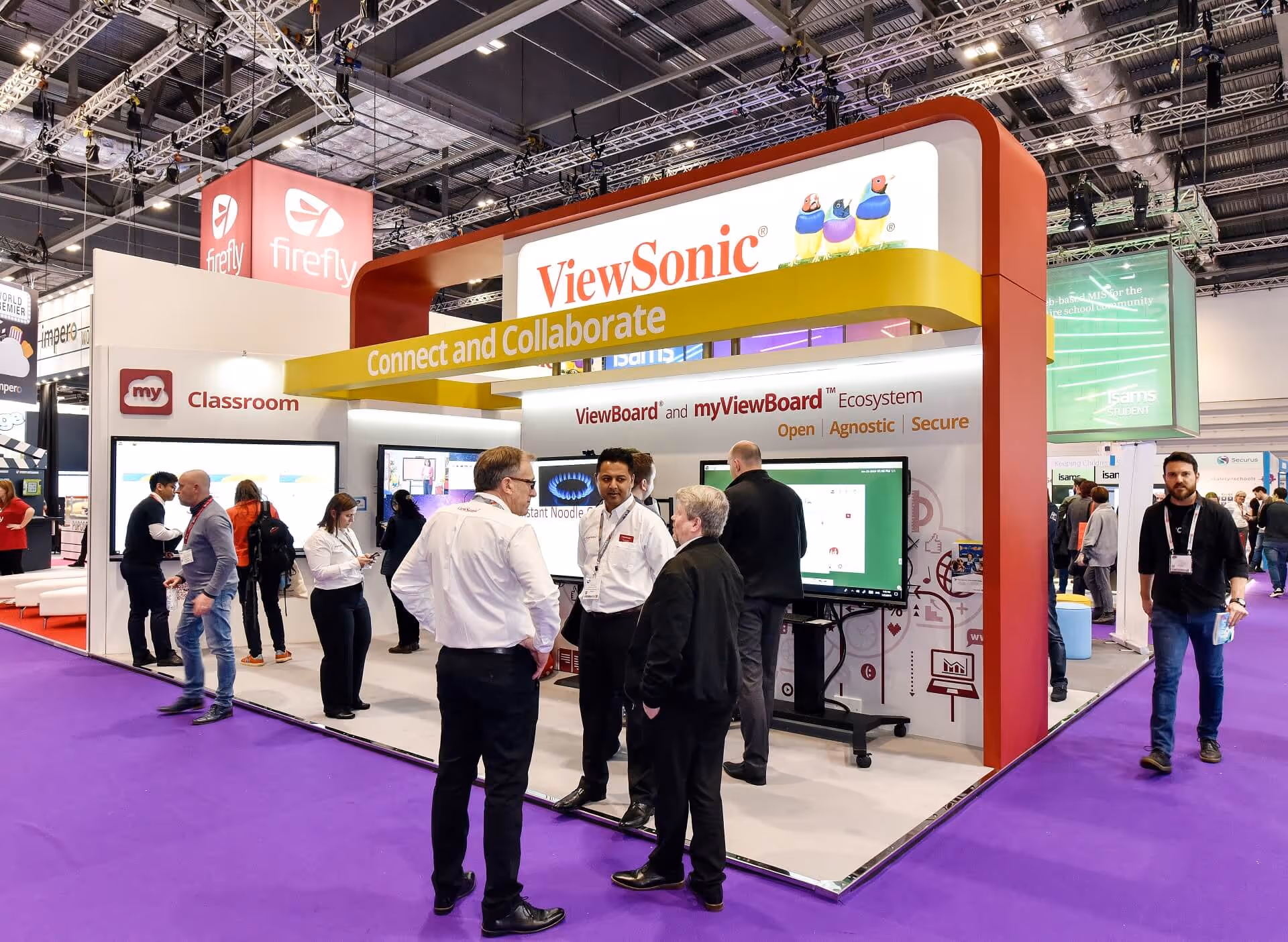 ViewSonic is a leading global provider of visual solutions including LED monitors, commercial displays, touchscreens, projectors and virtual desktops. A market-leader, it provides the latest in visual technology to the education, business, entertainment and professional sectors. They wanted a large open and inviting stand to show off their technology at BETT 2019.